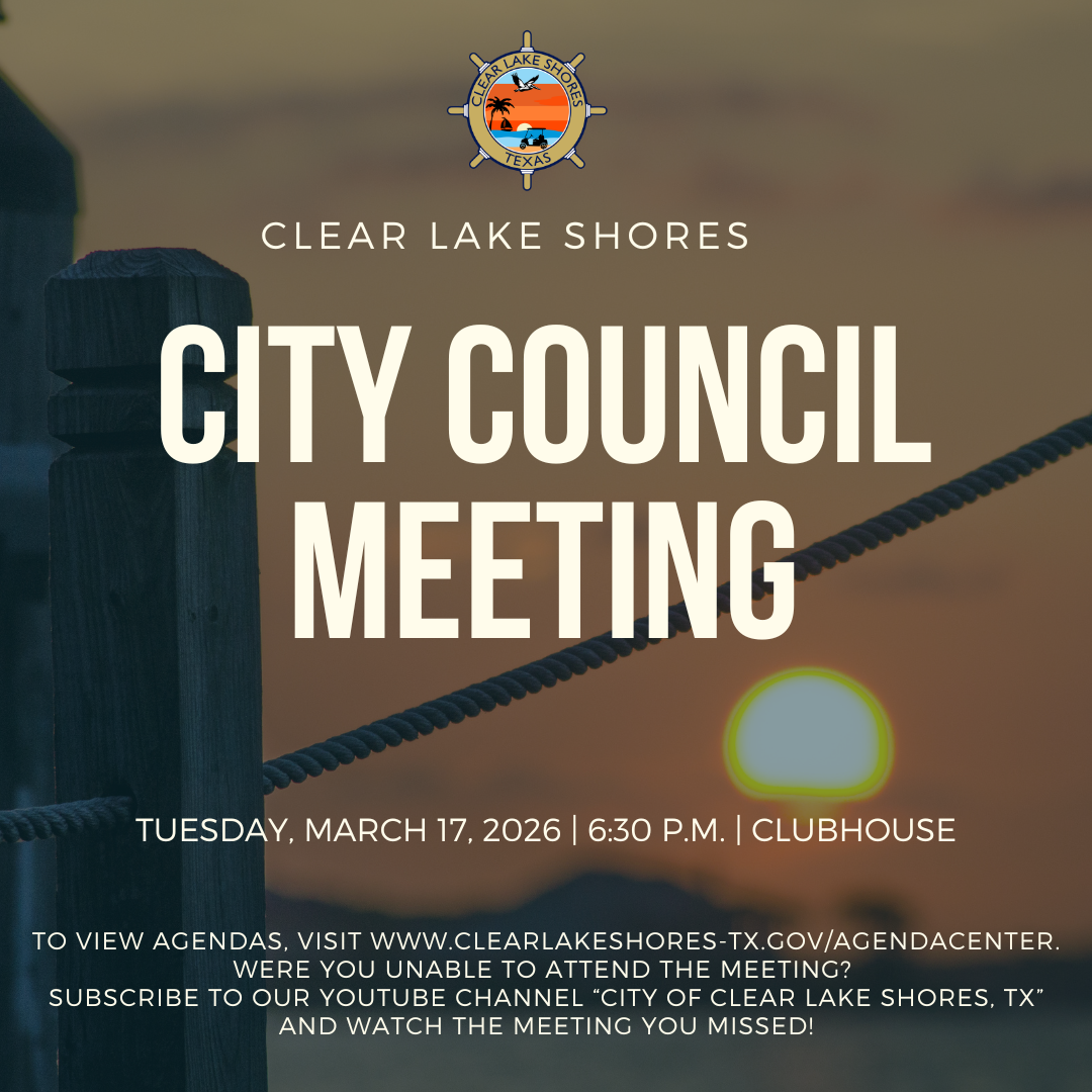 To view the agenda visit: https://www.clearlakeshores-tx.gov/AgendaCenter